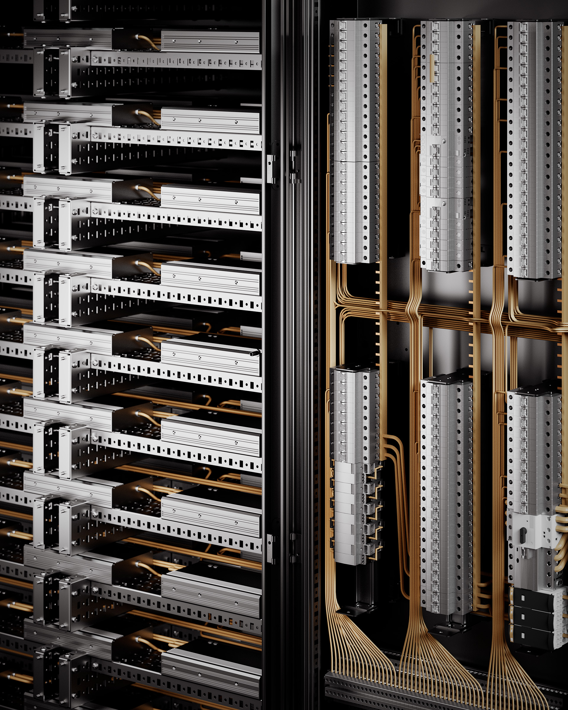 Safe and healthy living: all the lighting in the house uses low-voltage cables connected to transformers located inside a soundproof, steel console.